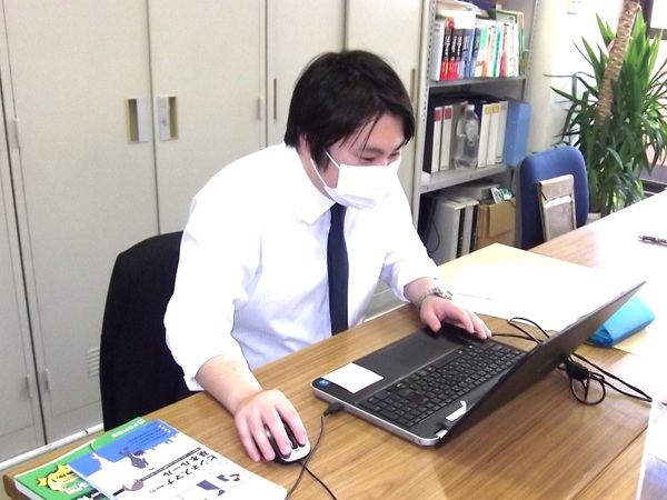 社員の社内での様子、先輩との交流を撮影しました。